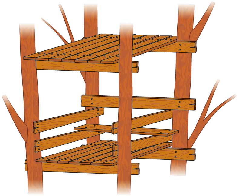 Saj to ni nič težkega, le poiskati morate pravo mesto v gozdu, kjer raste primerno razvejano drevo ali pa rastejo štiri drevesa na primerni razdalji za gradnjo. Za izdelavo boste potrebovali nekaj desk in različno dolgih žebljev. Seveda bo dobrodošla pomoč prijateljev, s katerimi si boste hišico delili.