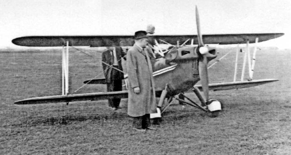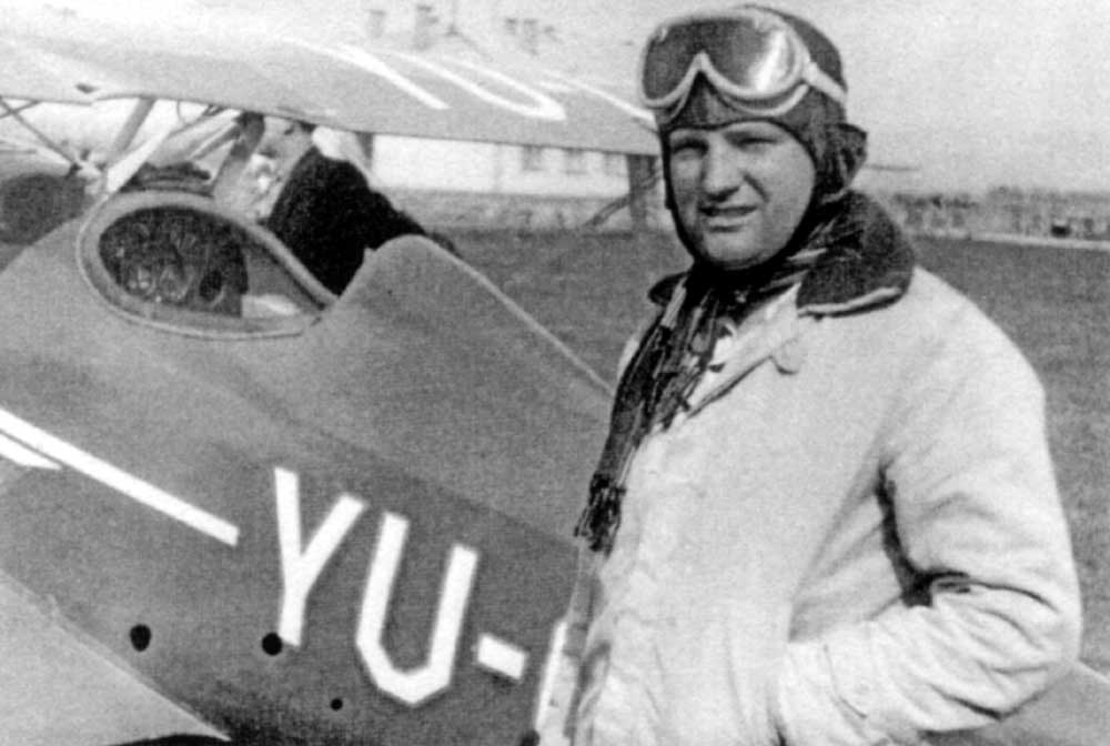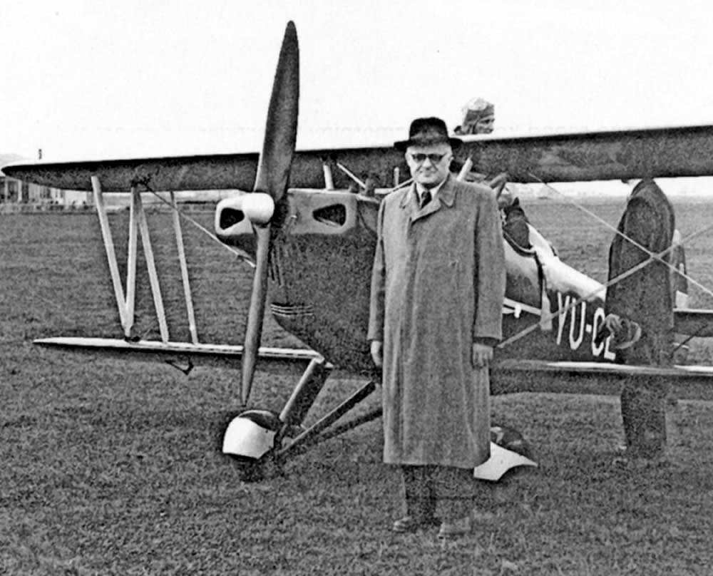 Tedaj še mladi inženir Anton Kuhelj pri svojem prvencu KS-1 v prvotni različici (Vir: Letalstvo in slovenci).