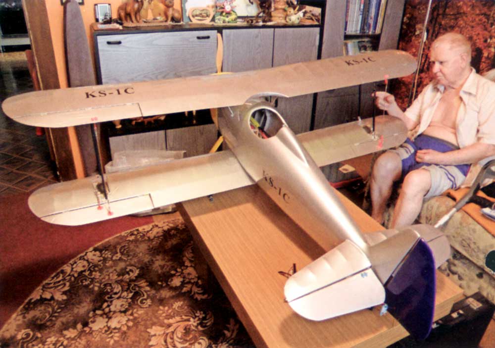 Anton Pavlovčič ob svojem modelu KS-1c, avgusta 2012 (Vir: Tim, 9, 2013).