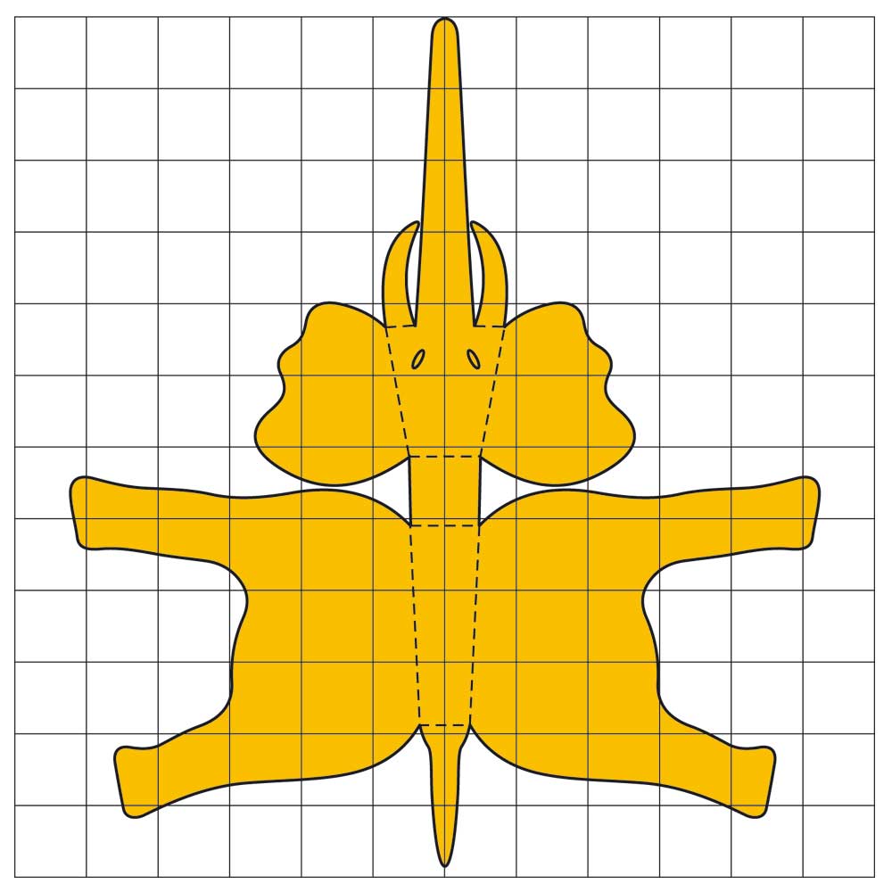 Najprej si s pomočjo mreže narišite figuro v velikosti, ki ste si jo izbrali. Za lažje delo lahko obliko povečate tudi s fotokopirnim strojem (glej PDF).